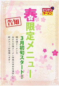 春の季節メニュー「台湾ラーメン」が始まりました。